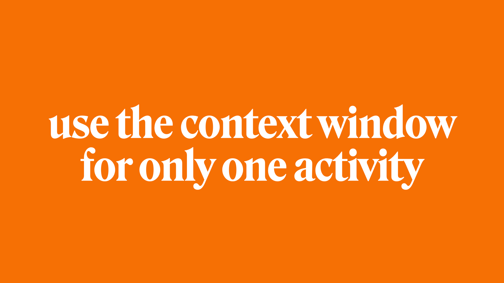 The next important thing to learn is that you should only use the context window for one activity. When you're using Cursor or any one of these tools, it's essential to clear the context window after each activity (see below).