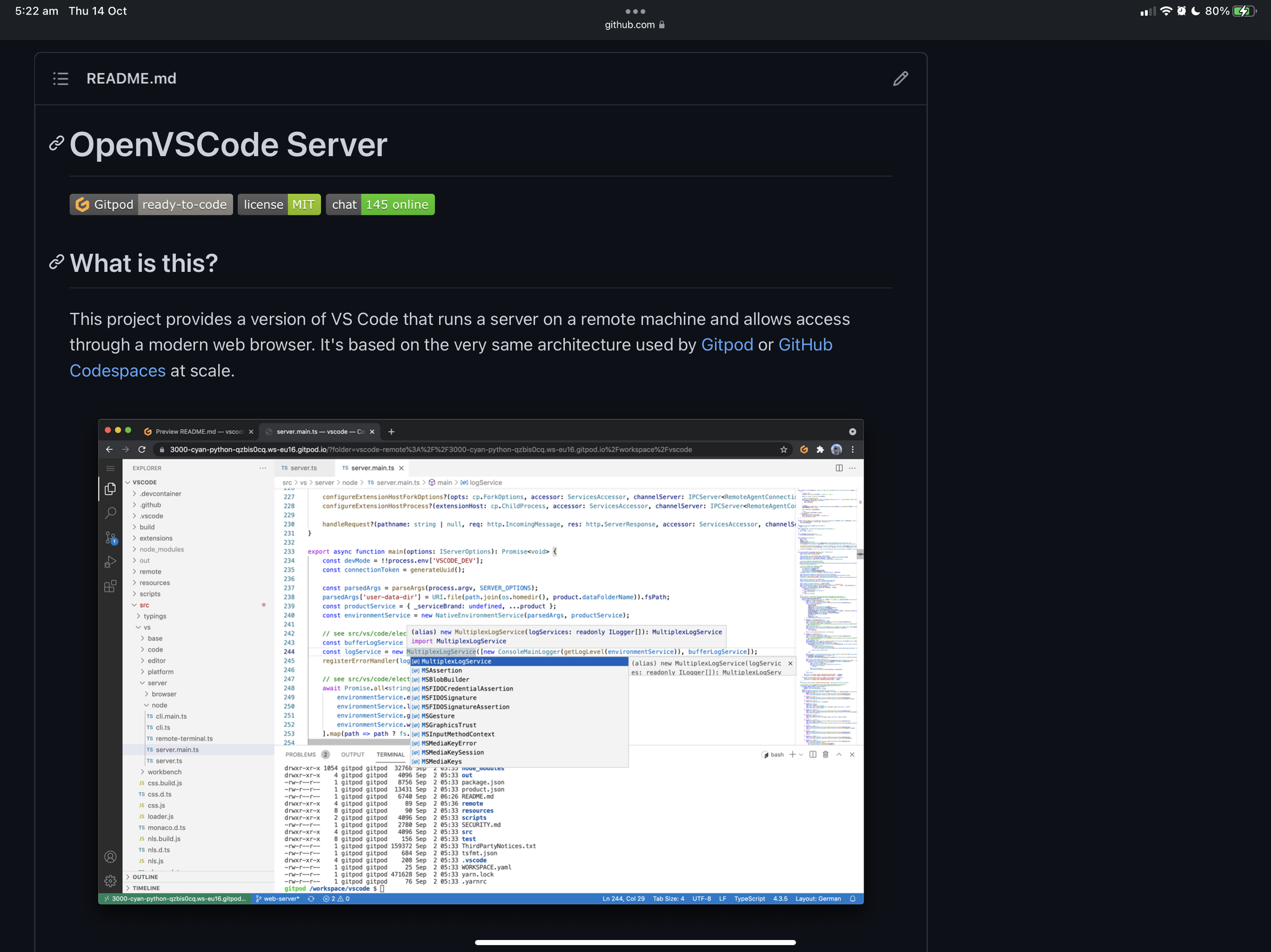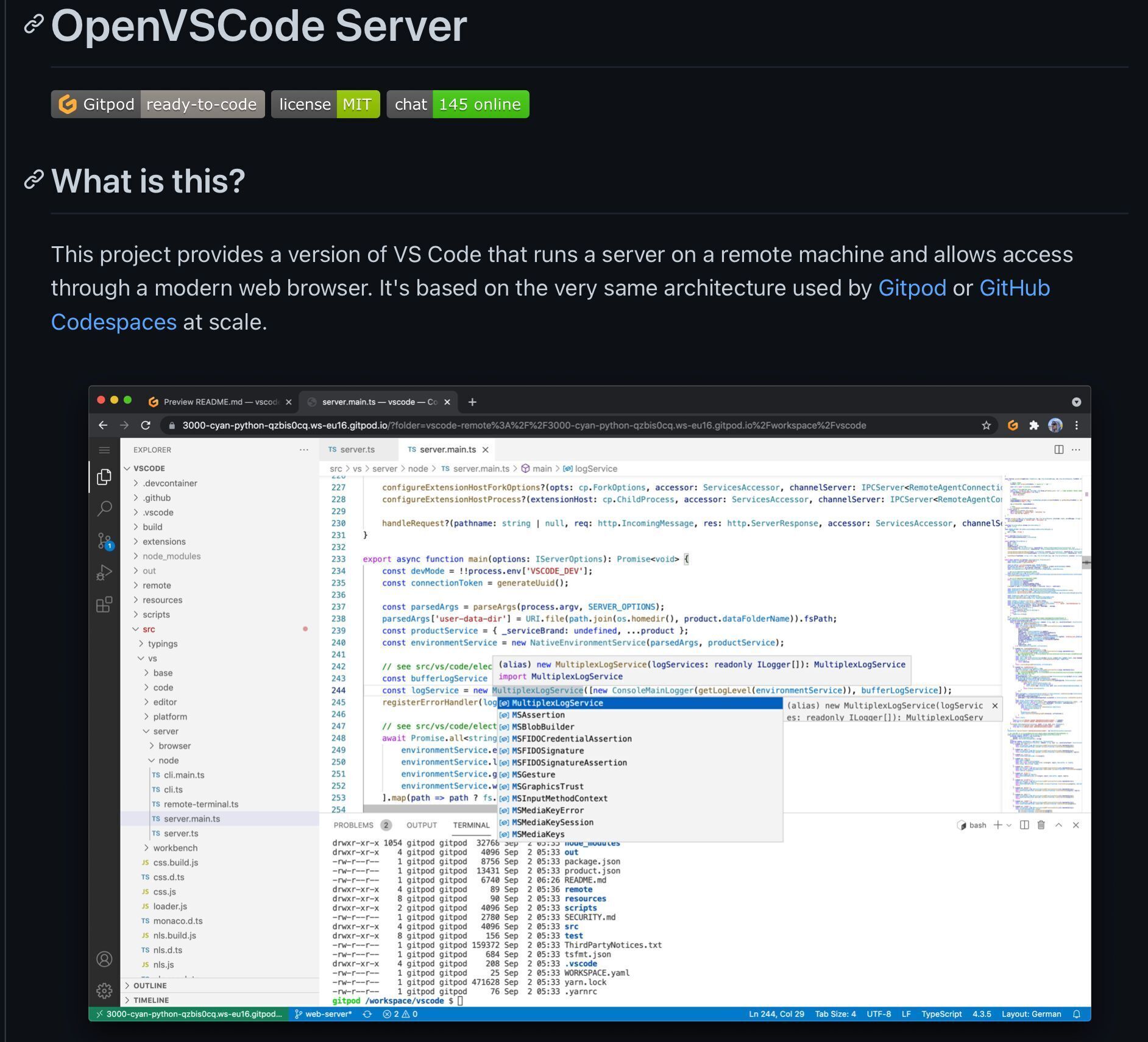 Thanks to the recent release of OpenVSCode Server you can now run what is essentially exact same version of Visual Studio Code that is used on GitHub Codespaces and Gitpod on your own infrastructure.