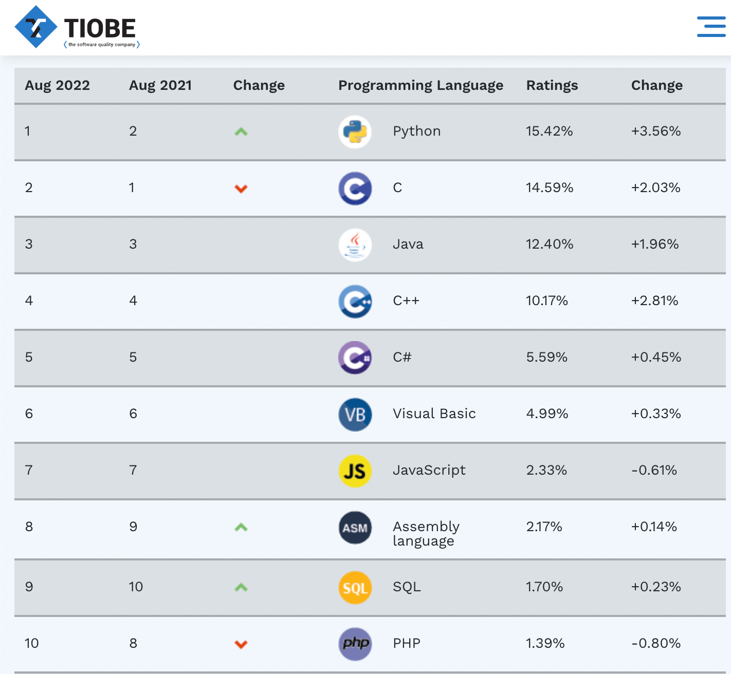 According to the latest TIOBE index of programming language popularity, five of the most popular programming languages/ecosystems are above, and Microsoft has near control of the seventh most popular language—JavaScript (via TypeScript).