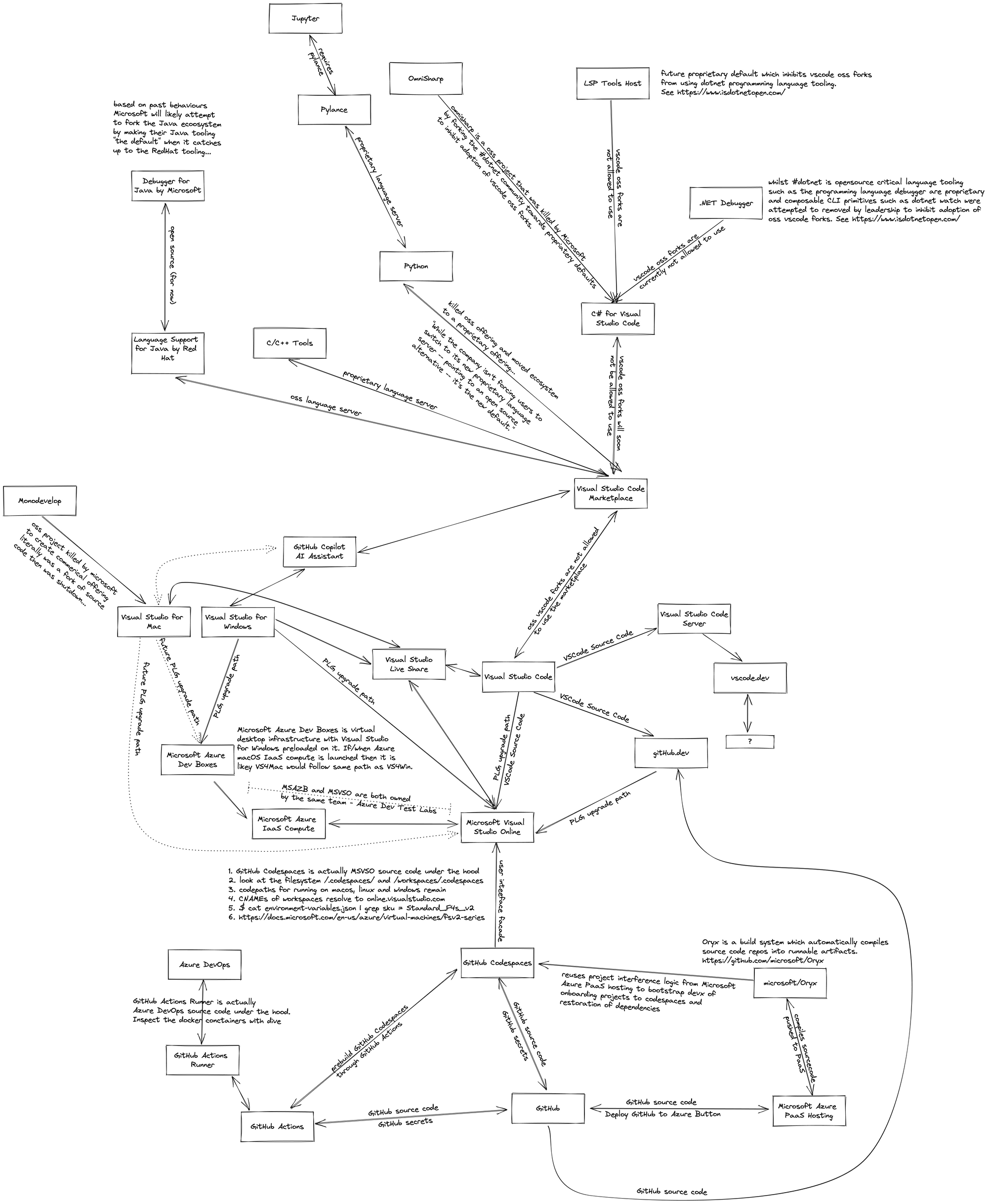 So why am I bringing this all up? It's because Visual Studio Code is a ramp to move the developer tooling ecosystem towards an end-to-end consumable services model of software development tools, and GitHub Codespaces is a white label of an existing service called Visual Studio Online aka Microsoft Dev Box aka Microsoft Azure DevTest Labs.
