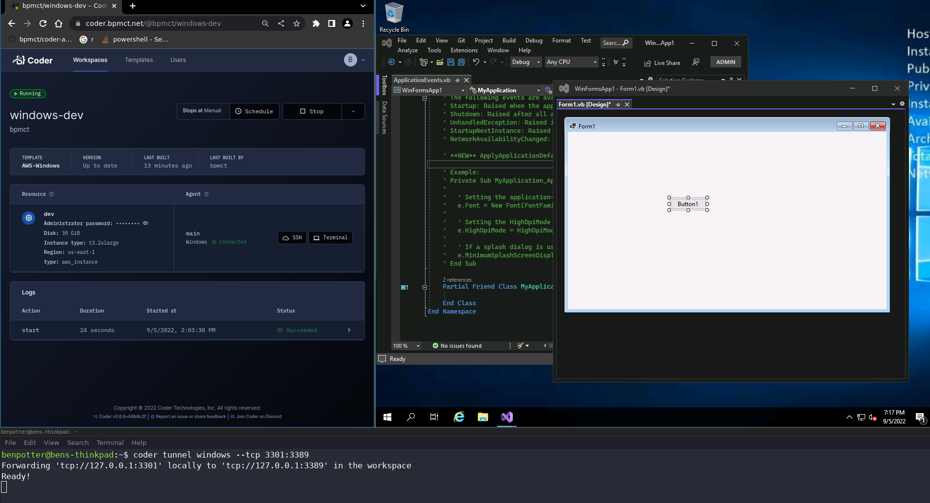 Coder consists of two parts: a command line application and a provisioner portal that is self-contained within the CLI. You can take Coder for a spin via