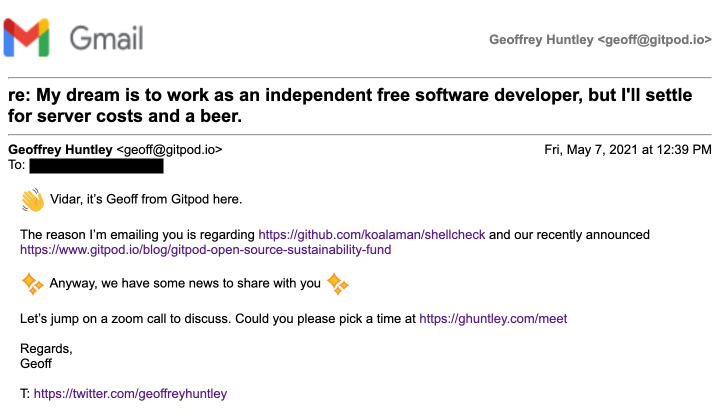 It's only out of goodwill that someone would do it, or in my case, as part of a marketing expenditure program. While I was at Gitpod, I was able to distribute over $33,000 USD to open-source maintainers through the program.