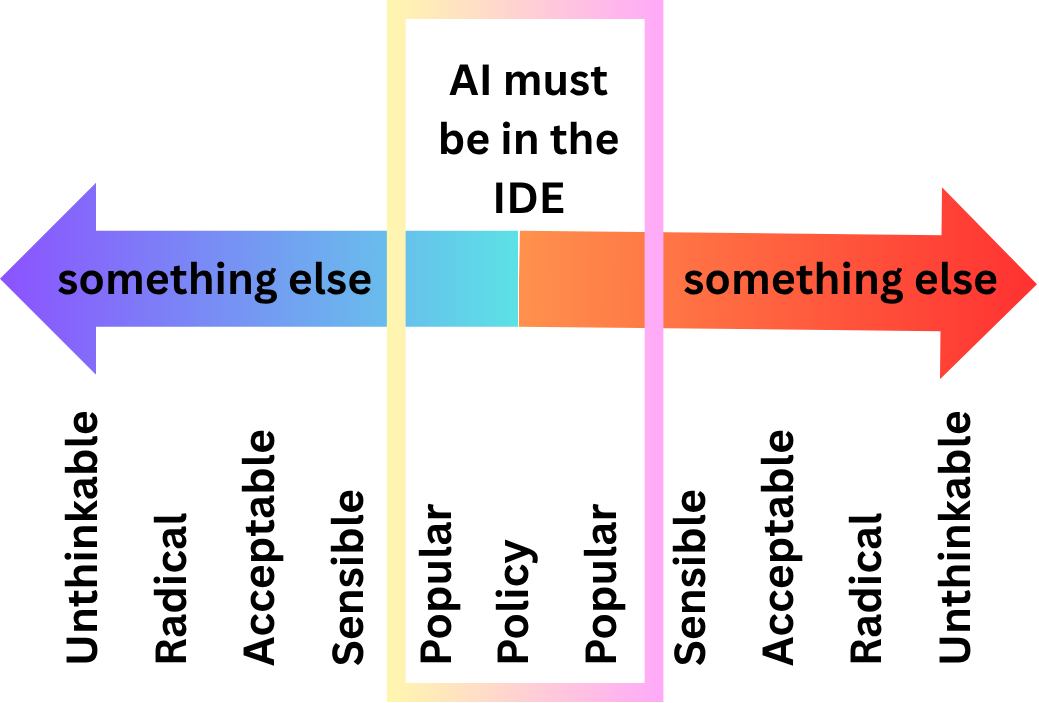You see, the Overton window can be adapted to model disruptive innovation by framing the acceptance of novel technologies, business models, or ideas within a market or society. So I've been pondering about where, when and how AI can be framed.